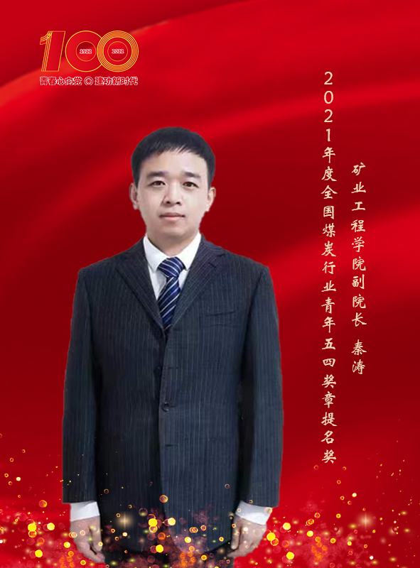 编者按:“牢记党的教诲,立志民族复兴,不负韶华,不负时代,不负人民,在青春的赛道上奋力奔跑,争取跑出当代青年的最好成绩!”五四青年节前夕,习近平总书记寄语广大青年,凝聚起踔厉奋发、勇毅前进的青春力量。逐梦百年路,奋斗向未来。为喜迎党的二十大,集中展示新时代黑米兰官网平台青年的精神品格和价值追求,树立政治进步、品德高尚、事迹突出的优秀青年典型,不断团结引领广大青年永远跟党走、奋进新征程,特推出五四先优风采录。今天推出五四先优风采录第一期,全国煤炭行业青年五四奖章提名奖、矿业学院副院长秦涛。