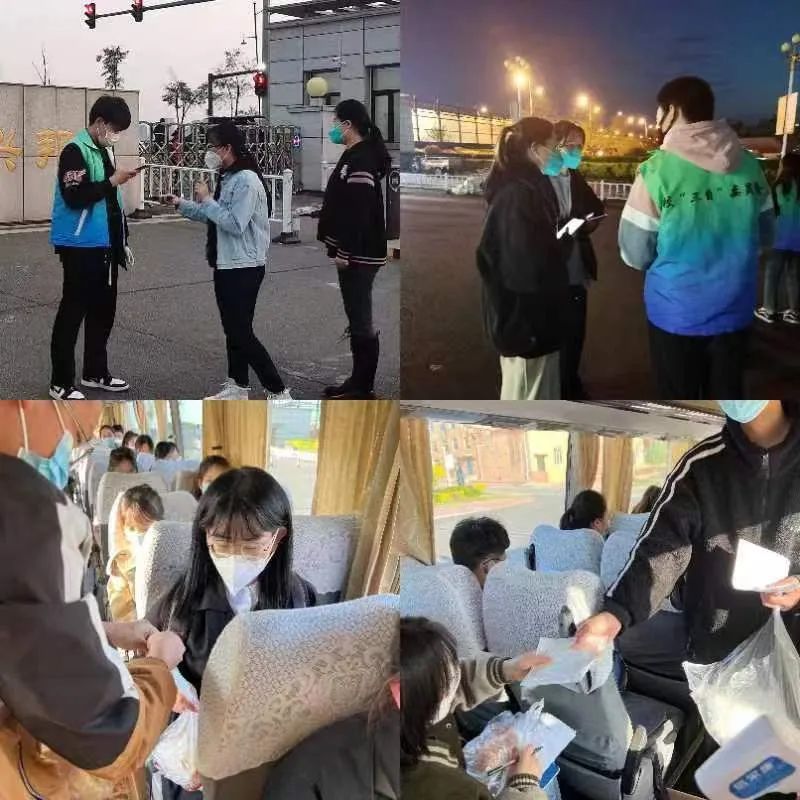 部门联动,多措并举,用力解难事。为安全、有序、高效做好送站服务,后勤管理处为考生设立专用核酸检测点、配送爱心早餐;资产处为考生免费提供N95口罩、手消、抗原检测试剂盒;保卫处为送站大巴开辟绿色通道,简化学生出入校手续。各部门密切配合、有序联动、落实保障,全力为考生保驾护航。