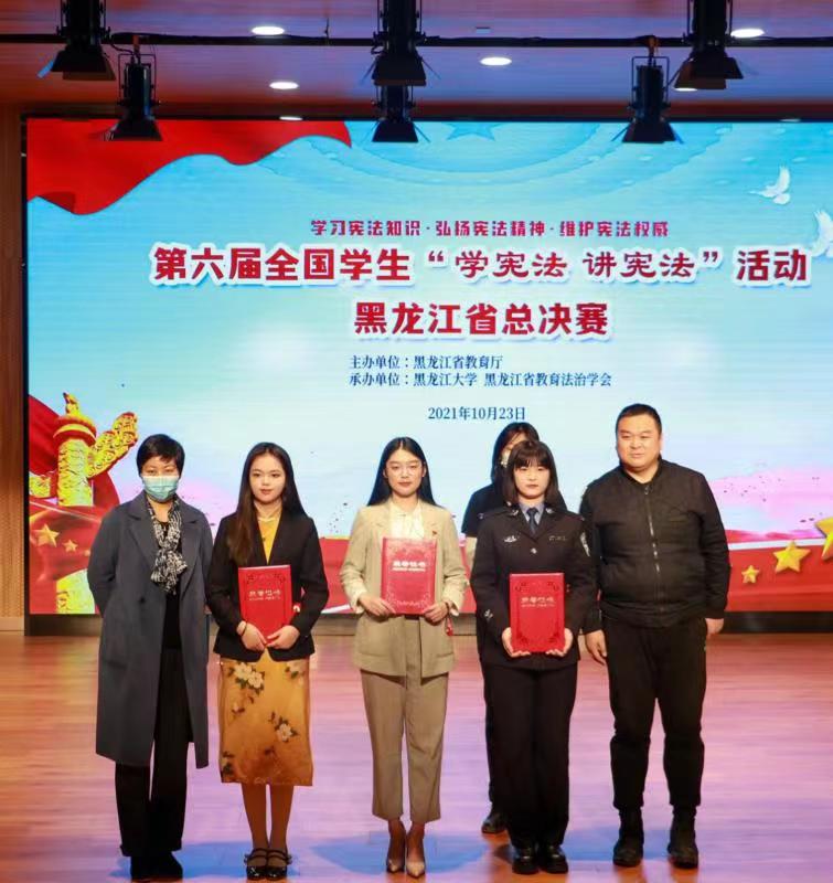 在全省“学宪法讲宪法”演讲比赛中,邓睿妍经过激励的角逐,成功晋级全省第二轮决赛。在决赛的命题演讲中,她结合自身专业的真实案例,通过新颖的角度和生动的语言讲述了“学宪法,讲宪法”的重要性,以极富感染力的表现形式和出色的临场应变得到了认可,最终以优异的成绩获得了黑龙江省总决赛演讲比赛大学组三等奖。在“学宪法讲宪法”知识竞赛活动中,伍奇柒也是经过了学院初赛、学校决赛选拔赛,并以全校第一的优异成绩代表学校参加省级比赛,并最终获得全省“学宪法 讲宪法”获得黑龙江省总决赛知识竞赛大学组优秀奖。