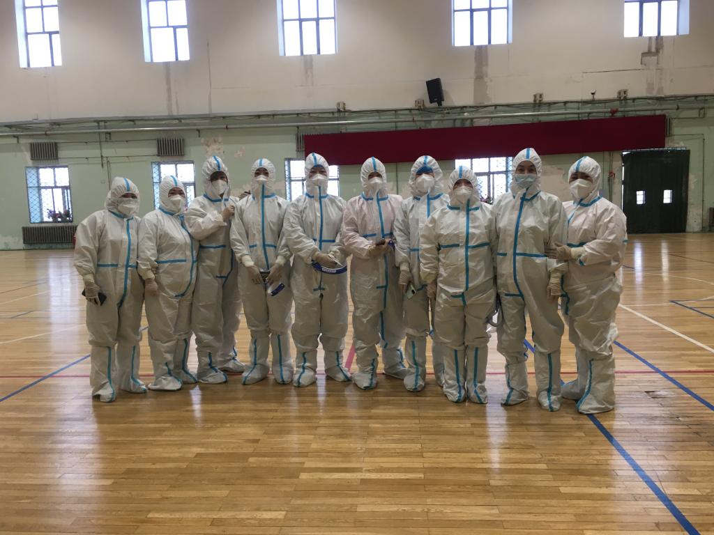 “就是要把学校当成家,我经常跟大姐们这么说。”作为楼宇中心负责人,他主管62名保洁人员,负责主楼、朝阳楼、科技大厦以及各二级学院楼宇的卫生清扫工作。“人多、岗位多、工作地点分散,但是我们心齐。”学校静态管理期间,这支队伍中的很多人,都选择了住校工作,她们默默坚守在自己的岗位上,一守就是50多天。为了解决学校核酸检测人员短缺的问题,王启龙从她们中挑选出了十几人,经过严格的培训,承担起了部分扫码工作。完成核酸检测任务后,脱下防护服,她们还要继续回到自己的工作岗位完成卫生清扫。