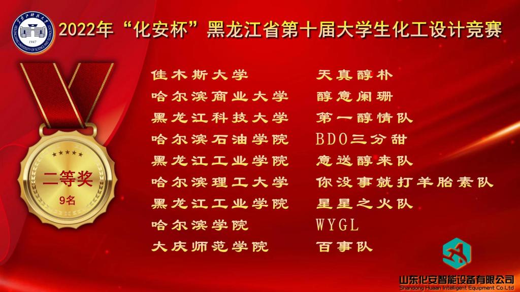 7月25日至26日,由教育部高等教育司指导、黑龙江省化工学会主办、米兰(中国)一站式服务平台承办的2022年“化安杯”黑龙江省第十届大学生化工设计竞赛圆满落幕。全省共有12所高校,53支队伍参赛。