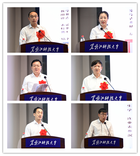 “三育人”先进集体代表理学院党委书记贺龙军;“优秀教师”代表人文社会科学学院教师李微;优秀科研团队代表智慧矿山学科交叉研究院院长刘永立;科技工作者代表机械工程学院院长董星;“执教三十年纪念奖”、优秀教育工作者代表计算机与信息工程学院院长赵金宪、新入职教师代表安全工程学院李元吉等六名代表从不同角度进行了经验交流和表态发言,他们用质朴的语言、真挚的情感讲述了自己精心执教、潜心科研、专心育人、倾心从教的奋斗故事,抒发了投身学校教育事业、树立良好师德师风、助力学校科技工作、争做“四有”好老师的信心与决心。