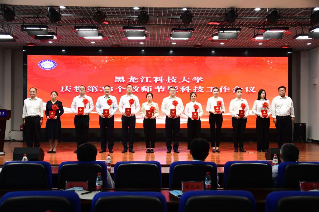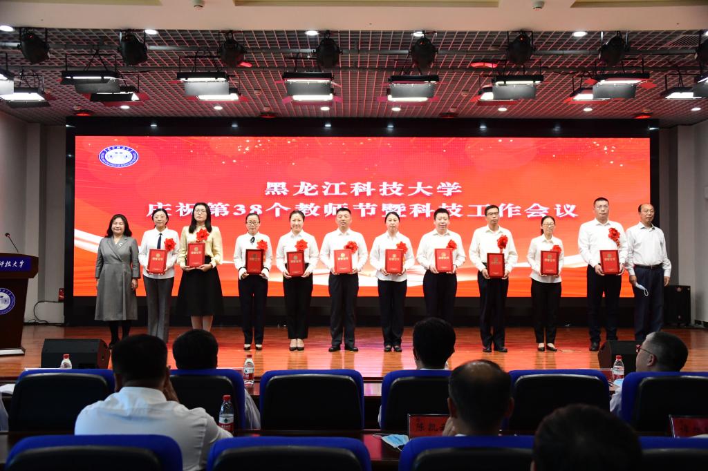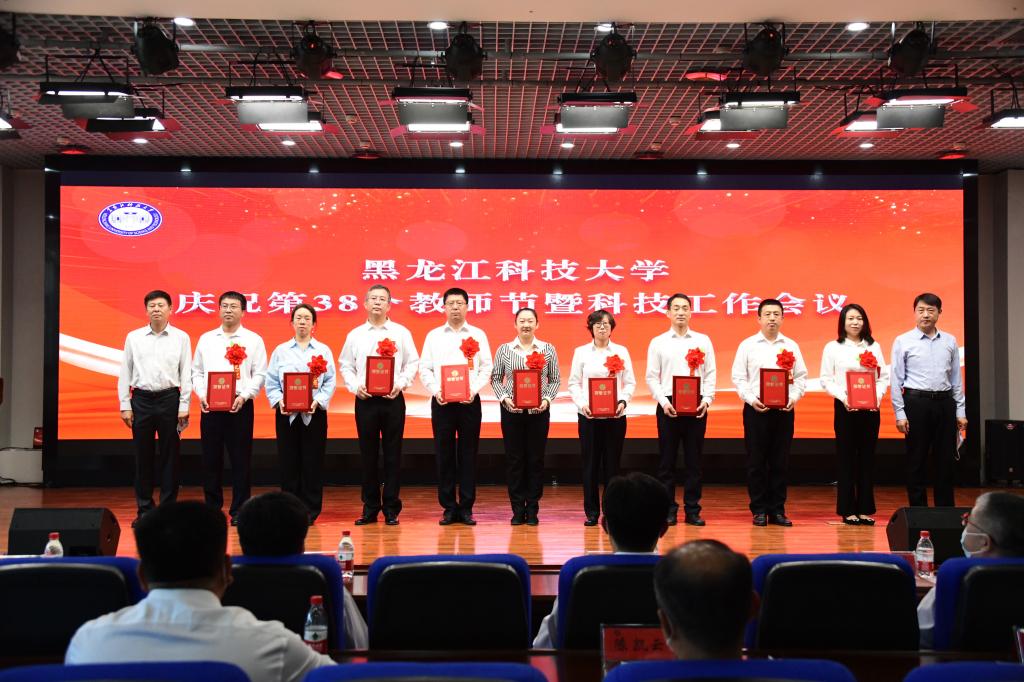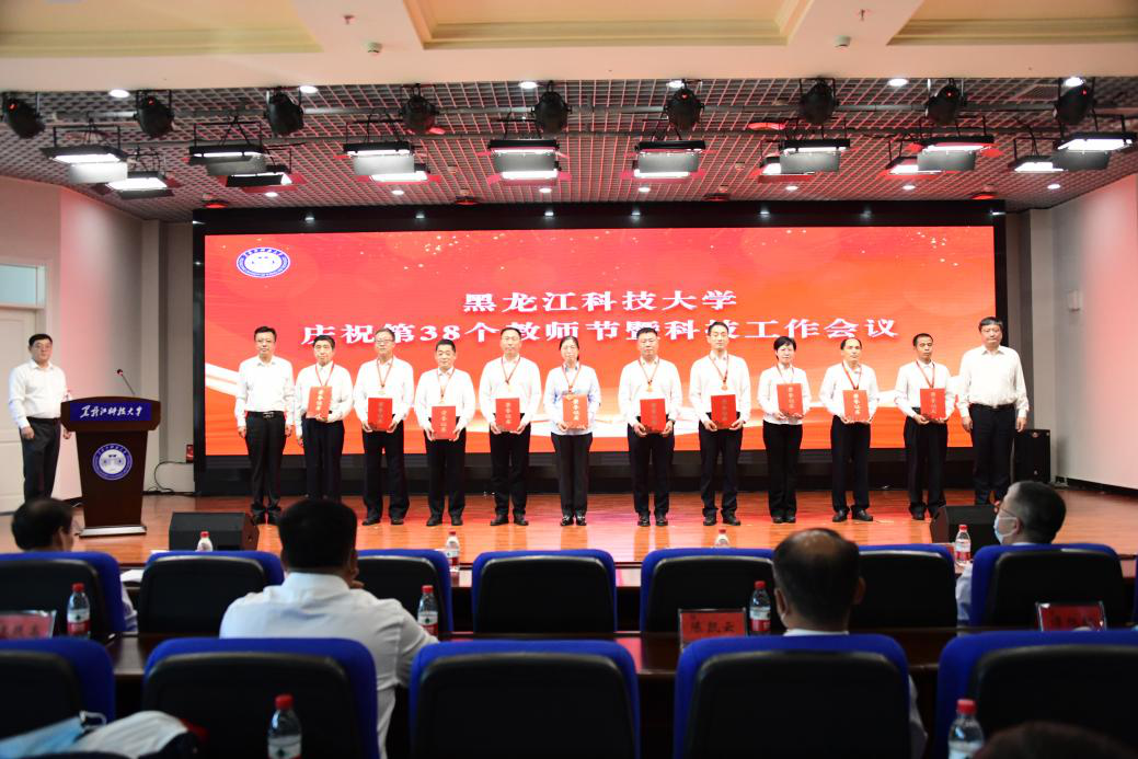 校党委副书记赵科学宣读了省劳动模范、省教学名师奖、省高校青年教师教学竞赛获奖名单及《关于表彰2021-2022学年“三育人”先进集体和先进个人的决定》。校党委常委、副校长谭旭红宣读了《关于授予“执教三十年纪念奖”的决定》及《关于表彰2022年优秀教师、优秀教育工作者的决定》。