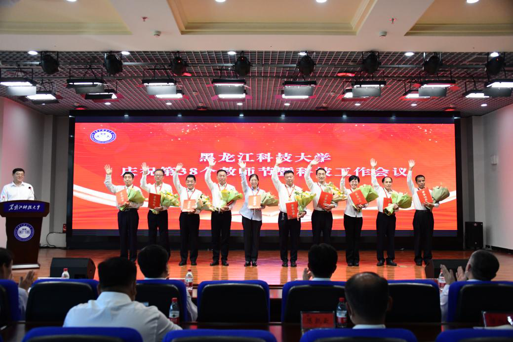 与会校领导分别向“优秀教师”“优秀教育工作者”等“先优”代表颁奖