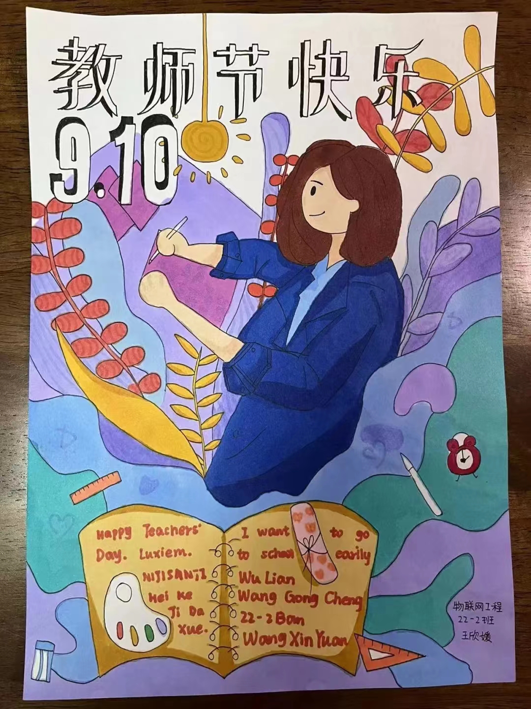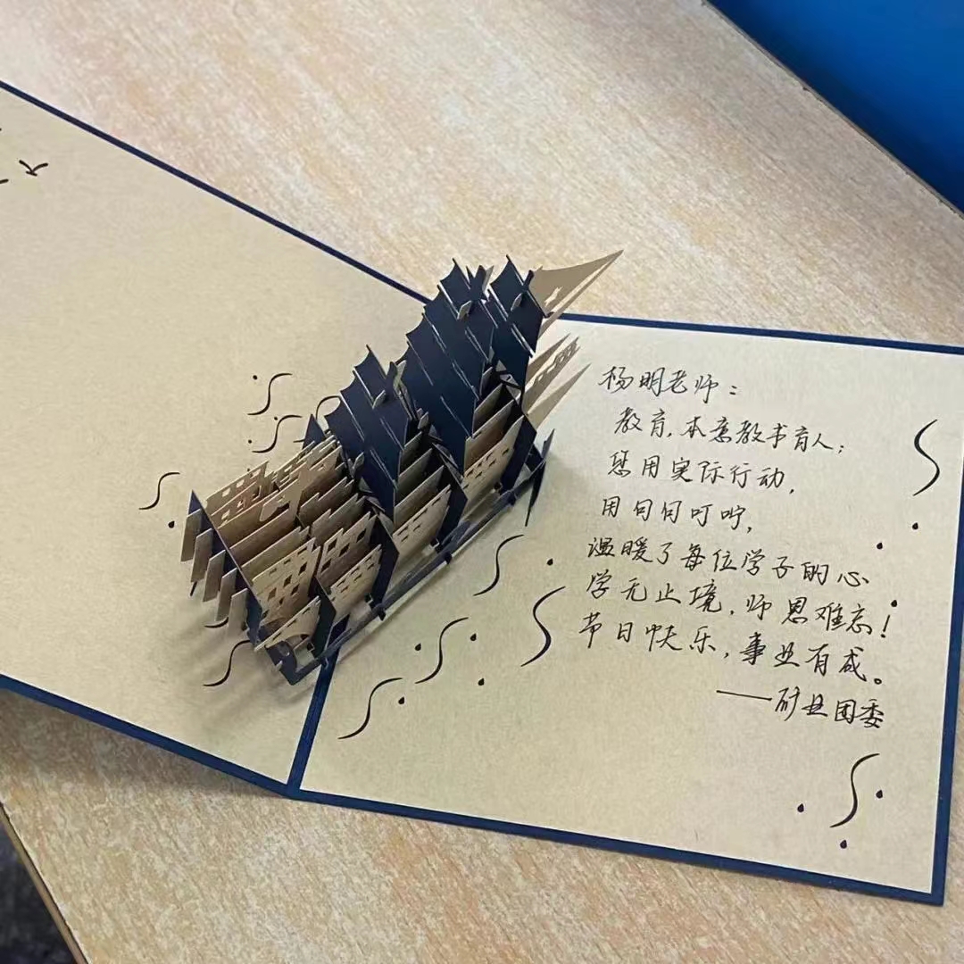 笔墨寄情——用手中的笔表达对老师的敬意和祝福。太阳石文学社组织开展了“诵师恩、感恩情”诗歌比赛,同学们用原创律诗来表达对老师尊敬与爱戴。书画协会组织开展了“笔耕不辍、 墨润桃李”书画征集大赛,建筑工程学院团委举办了“情满九月、感念师恩”手抄报活动,电子与信息工程学院团委进行了“笔触生情、歌师恩浩荡”征文绘画活动,机械工程学院团委开展了“手绘海报、传递师生情”绘画比赛,计算机与信息工程学院团委开展了绘画、手抄报大比拼,材料与科学学院团委开展了“纸短情长·恩师难忘”手抄报大赛……同学们纷纷通过板报、笔墨、绘画、剪纸、手抄报等形式以画言志,以墨传情,笔墨叙师恩,表达对老师的教育之恩,教导之情。
