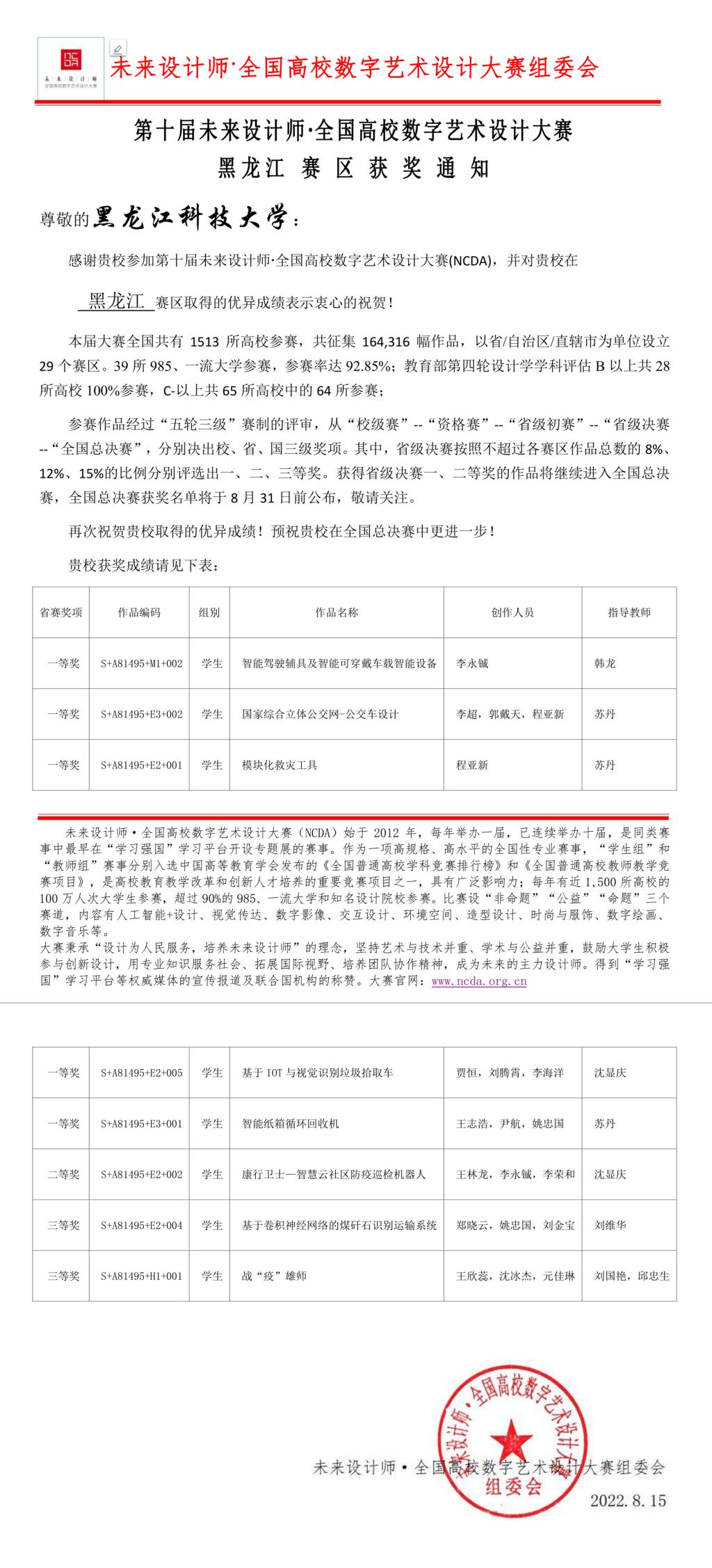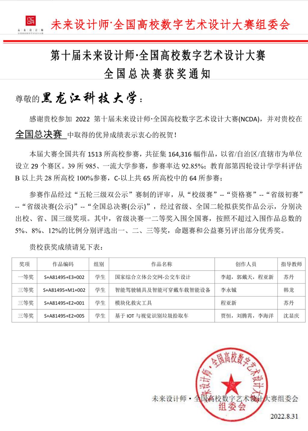 未来设计师·全国高校数字艺术设计大赛是中国高等教育学会2021全国普通高校大学生竞赛榜单内赛事,为艺术设计领域的高水平知名赛事,是大学生参与设计创新活动的重要平台,包括北京大学、清华大学、浙江大学、哈尔滨工业大学等全国1513所高校的164316幅作品参加了本届比赛。创新创业学院按照《2022年第十届未来设计师·全国高校数字艺术设计大赛通知》要求,组织了28支优秀团队的作品参加了省赛,并在省赛中获得一等奖5项、二等奖1项、三等奖2项的优异成绩,省赛一、二等奖的作品入围了国赛。