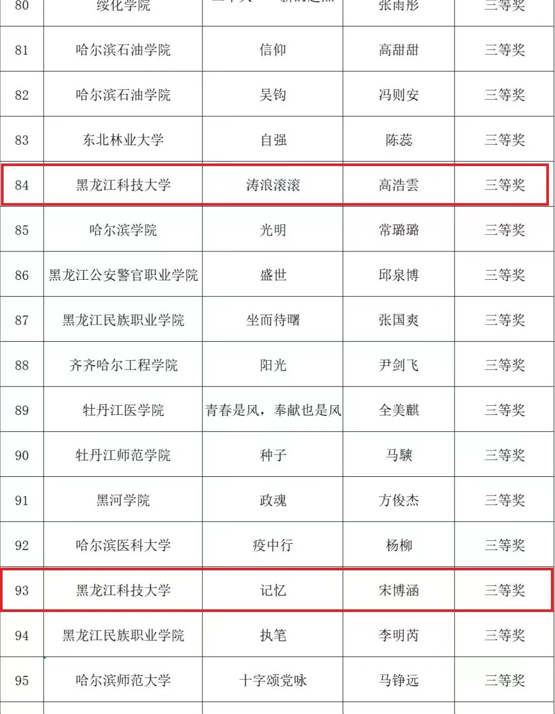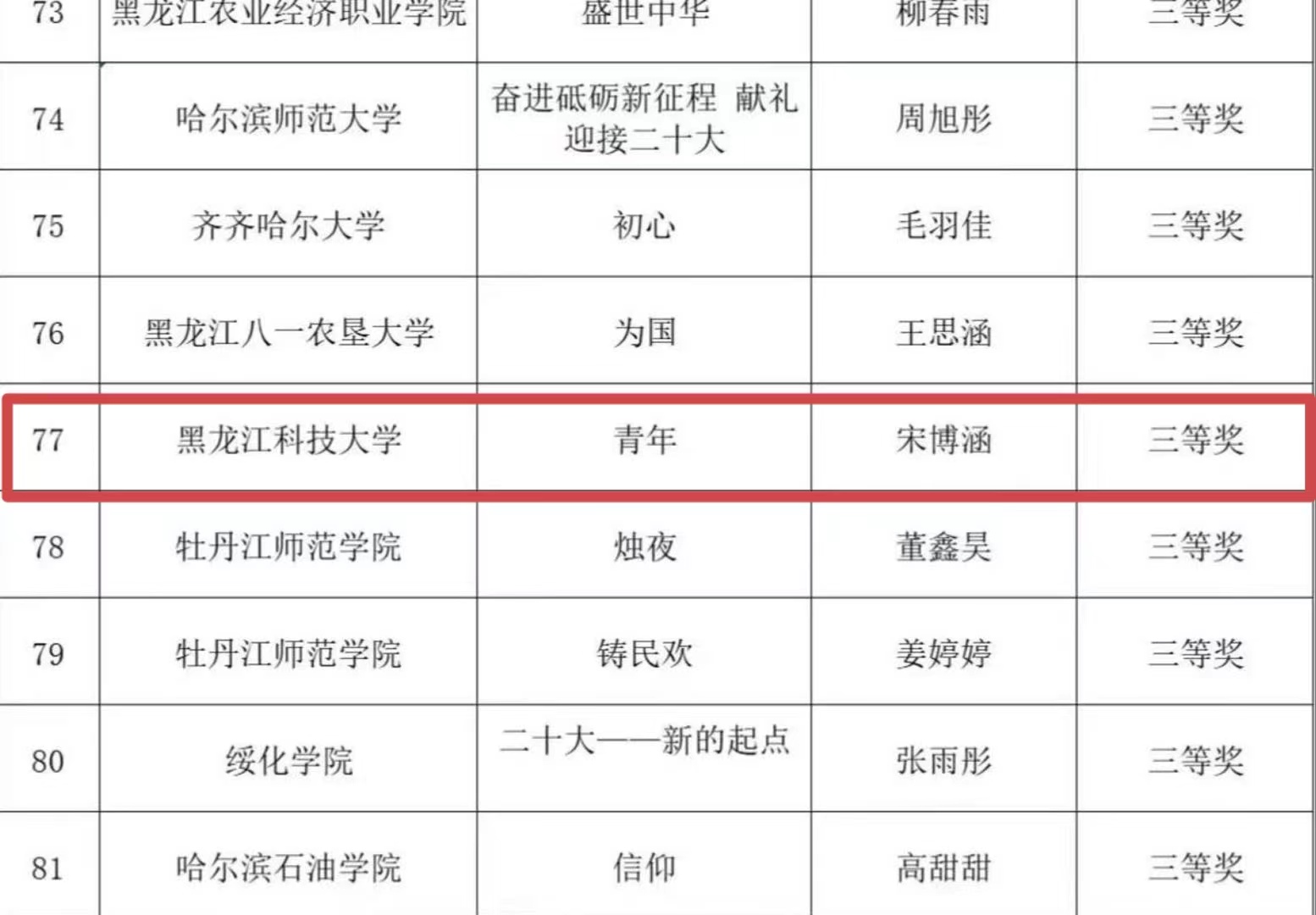近日,由黑龙江省高校网络思想政治工作中心主办的“青春献礼二十大 强国有我新征程”全省高校三行诗征集活动结果揭晓。米兰(中国)一站式服务平台上报的9项作品获奖,其中一等奖1项,二等奖1项,三等奖7项。