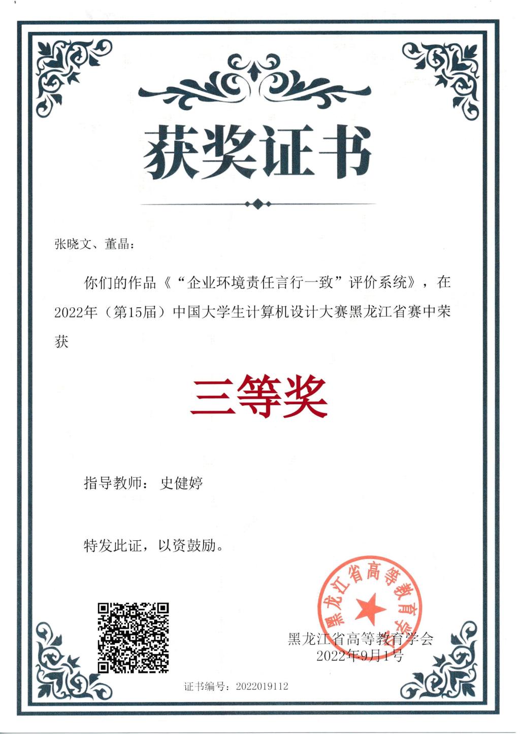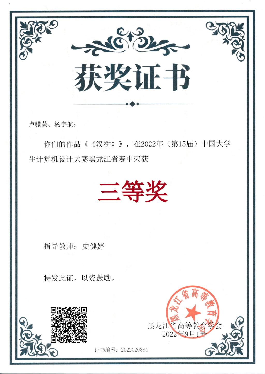 中国大学生计算机设计大赛是中国高等教育学会2021全国普通高校大学生竞赛榜单内赛事,是我国高校面向本科生最早的赛事之一,大赛以校赛、省赛、国赛三级竞赛形式开展,共有包括北京大学、上海交通大学、哈尔滨工业大学等850 所院校的6611件作品入围了本届国赛。创新创业学院按照《黑龙江省高等教育学会关于举办 2022年中国大学生计算机设计大赛黑龙江省赛的通知》要求,在全校范围内组织了省赛选拔赛。经过专家的严格选拔,9支优秀团队的作品在30个校赛作品中脱颖而出,代表学校参加省赛,并在省赛中,获得一等奖2项、二等奖2项、三等奖2项的历史最好成绩,省赛一、二等奖的作品入围了本届国赛,廉龙颖老师和冯新宇老师被省赛组委会评为优秀指导教师。