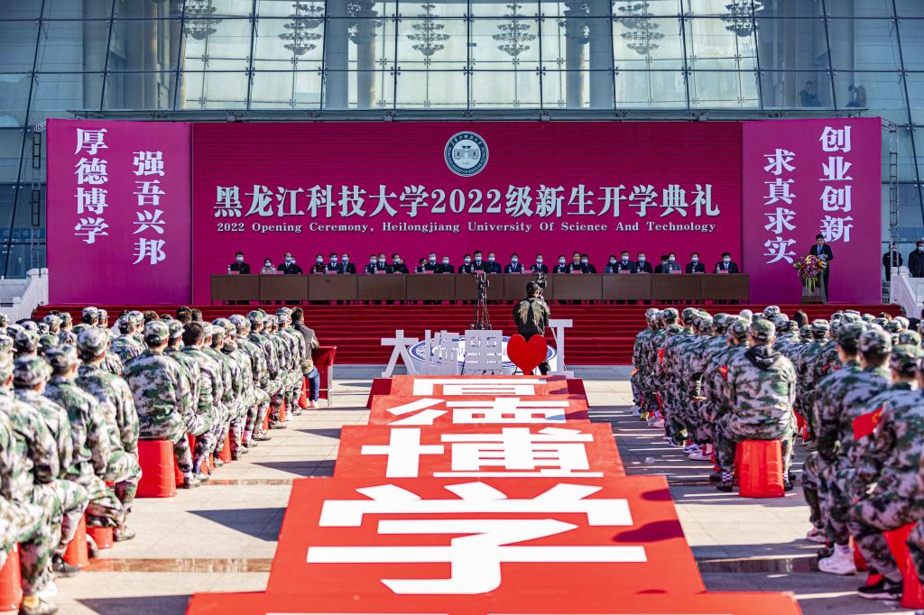 全体新生提前在科技广场就坐,手挥国旗,齐唱《我和我的祖国》,现场气氛热烈。14时,开学典礼正式开始,全场肃立,五星红旗在雄壮的国歌声中冉冉升起。