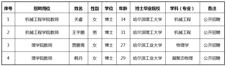 按照《黑龙江省事业单位公开招聘工作人员实施细则》的规定,根据《米兰官网平台2024年下半年公开招聘博士教师公告》明确的原则、程序和方法,现将拟聘用人员予以公示。如对公示人员有异议,可在公示期内反映,反映情况和问题必须实事求是,应签署或告知真实姓名、工作单位和联系方式。对线索不清的匿名信和匿名电话,公示期间不予受理。