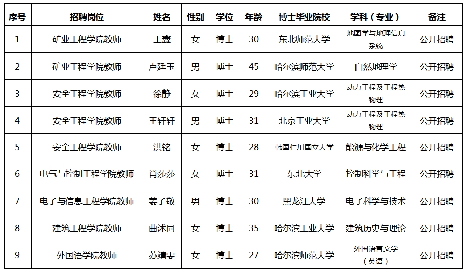 按照《黑龙江省事业单位公开招聘工作人员实施细则》的规定,根据《米兰官网平台2024年下半年公开招聘博士教师公告》明确的原则、程序和方法,现将拟聘用人员予以公示。如对公示人员有异议,可在公示期内反映,反映情况和问题必须实事求是,应签署或告知真实姓名、工作单位和联系方式。对线索不清的匿名信和匿名电话,公示期间不予受理。