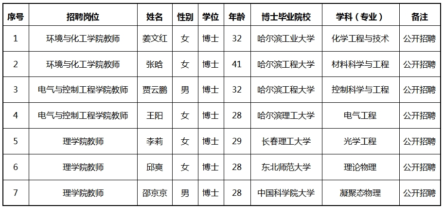 按照《黑龙江省事业单位公开招聘工作人员实施细则》的规定,根据《米兰官网平台2025年上半年公开招聘博士教师公告》明确的原则、程序和方法,现将拟聘用人员予以公示。如对公示人员有异议,可在公示期内反映,反映情况和问题必须实事求是,应签署或告知真实姓名、工作单位和联系方式。对线索不清的匿名信和匿名电话,公示期间不予受理。