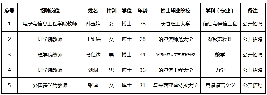 按照《黑龙江省事业单位公开招聘工作人员实施细则》的规定,根据《米兰官网平台2025年上半年公开招聘博士教师公告》明确的原则、程序和方法,现将拟聘用人员予以公示。如对公示人员有异议,可在公示期内反映,反映情况和问题必须实事求是,应签署或告知真实姓名、工作单位和联系方式。对线索不清的匿名信和匿名电话,公示期间不予受理。