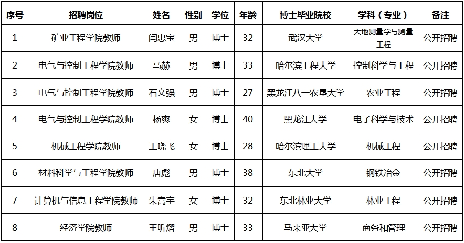 按照《黑龙江省事业单位公开招聘工作人员实施细则》的规定,根据《米兰官网平台2025年上半年公开招聘博士教师公告》明确的原则、程序和方法,现将拟聘用人员予以公示。如对公示人员有异议,可在公示期内反映,反映情况和问题必须实事求是,应签署或告知真实姓名、工作单位和联系方式。对线索不清的匿名信和匿名电话,公示期间不予受理。