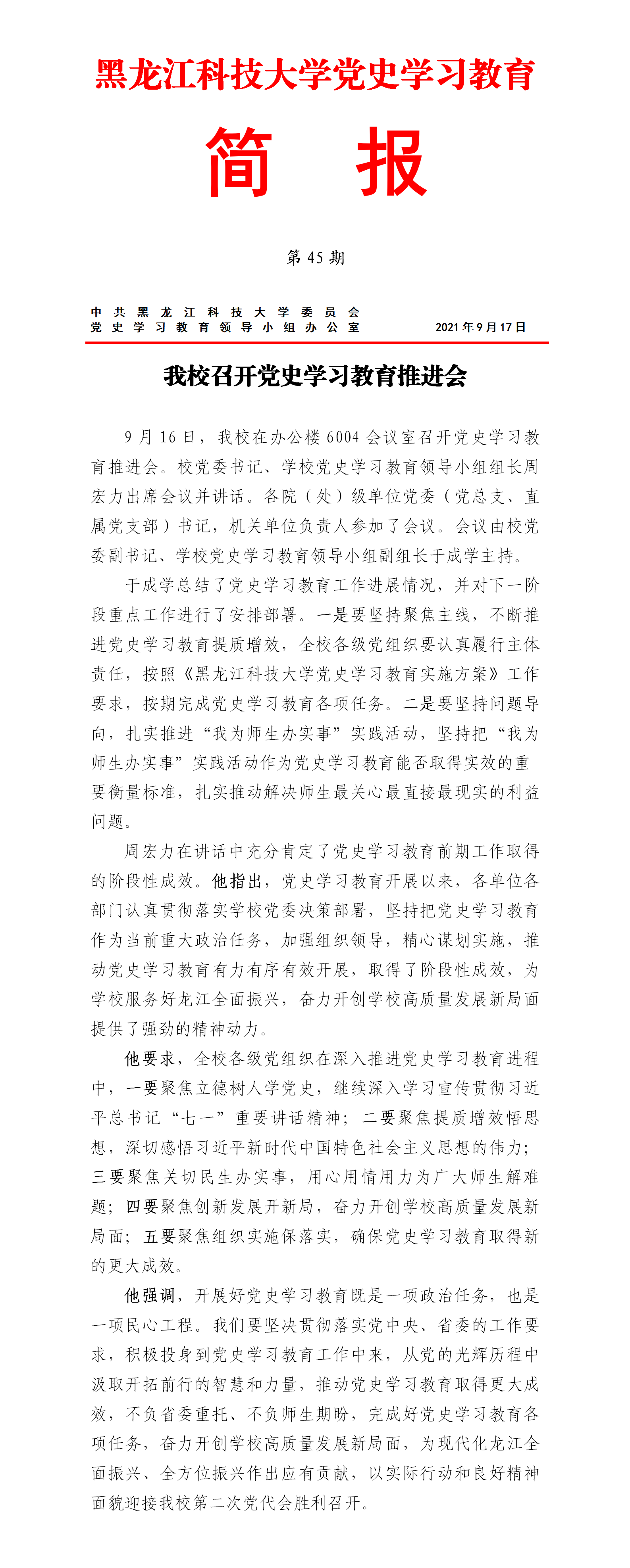 党史学习教育工作简报(第45期)