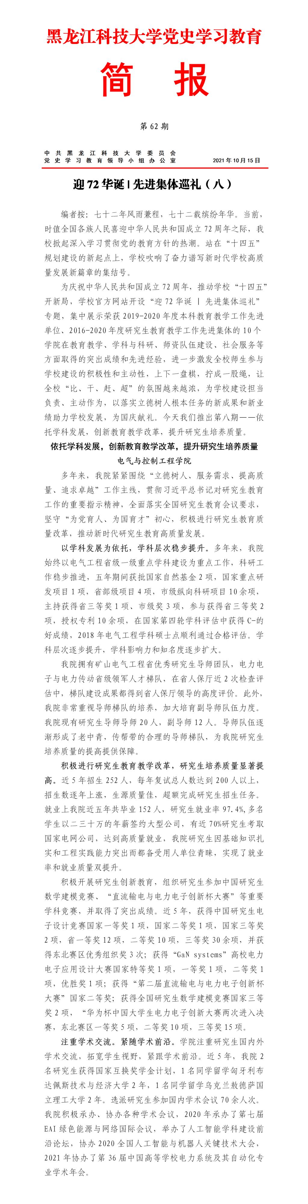 党史学习教育工作简报(第62期)