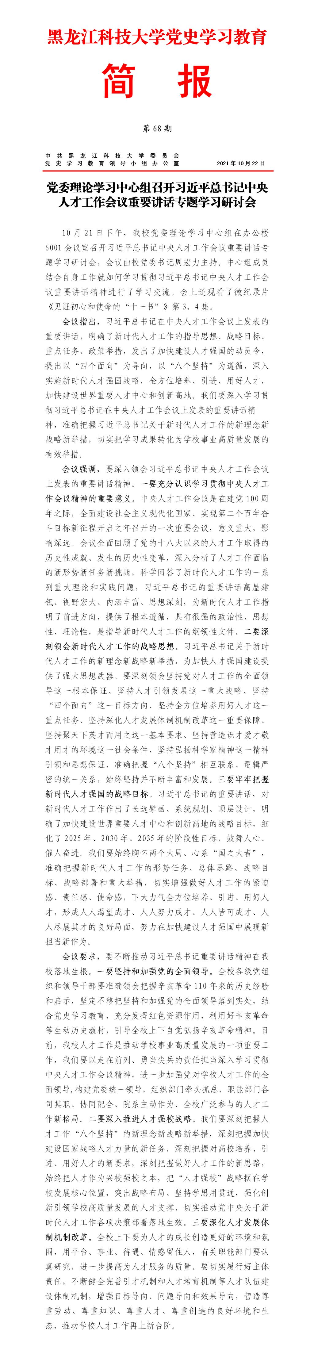 党史学习教育工作简报(第68期)