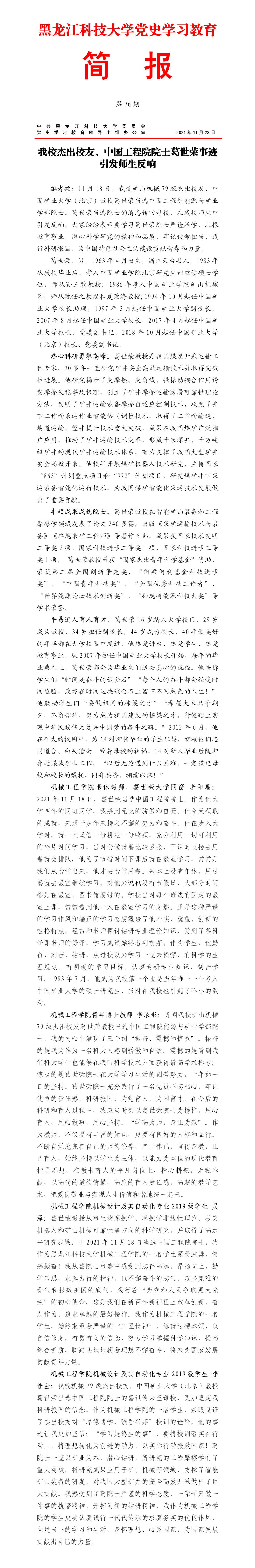 党史学习教育工作简报(第76期)