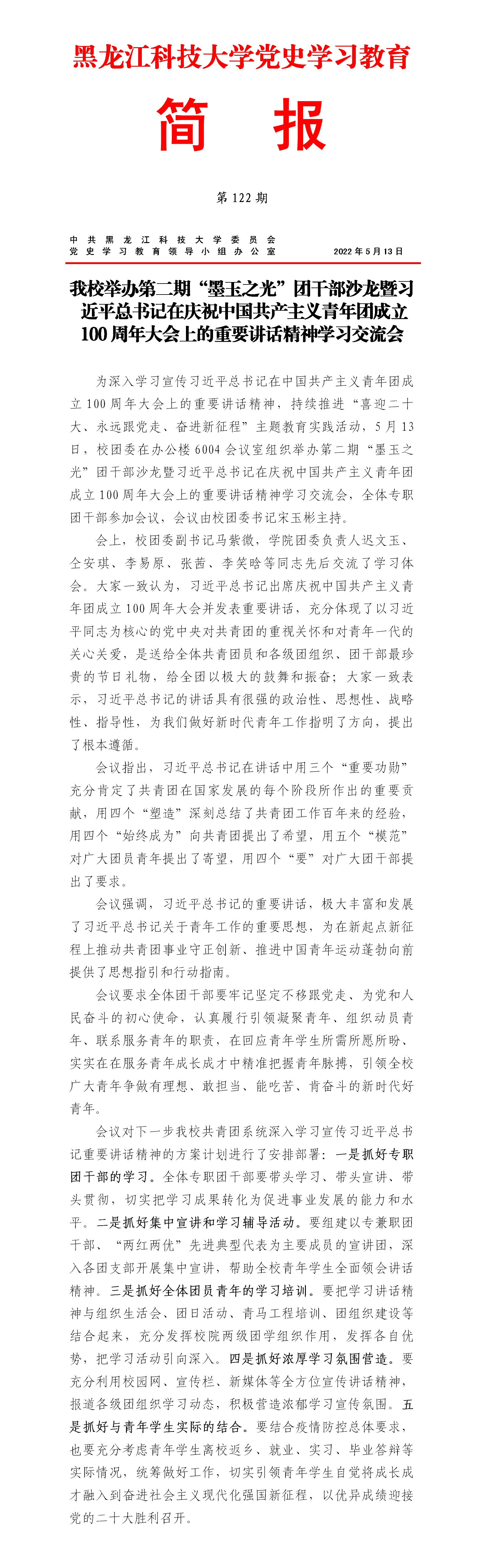 党史学习教育工作简报(第122期)