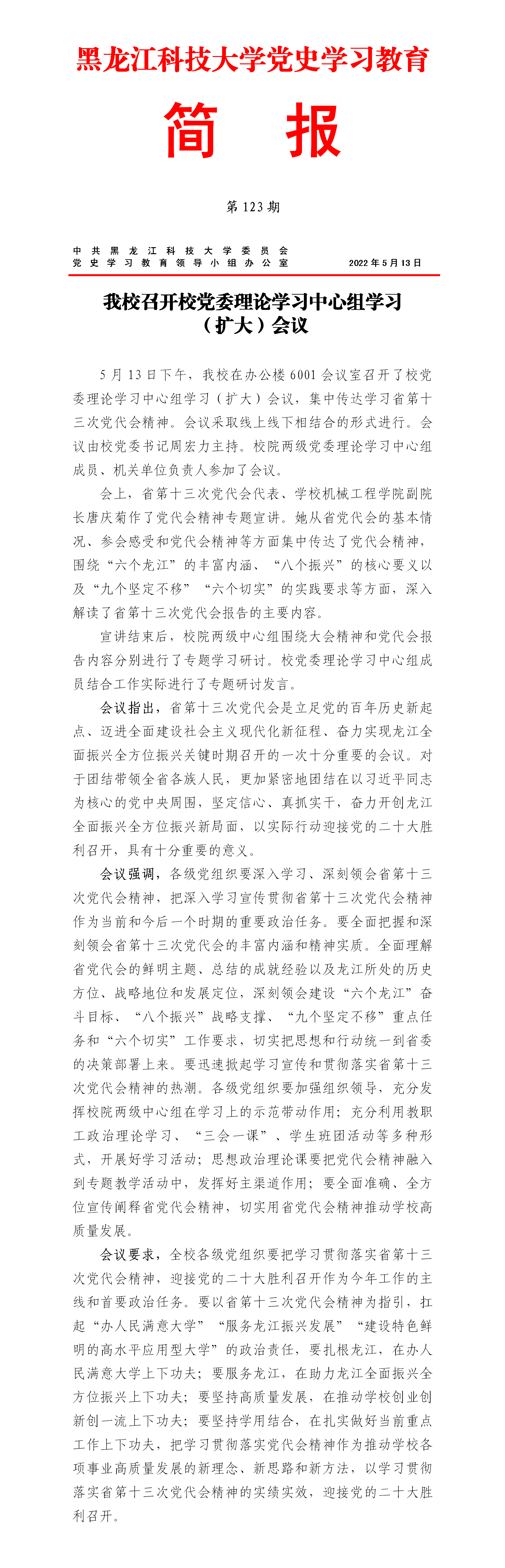 党史学习教育工作简报(第123期)