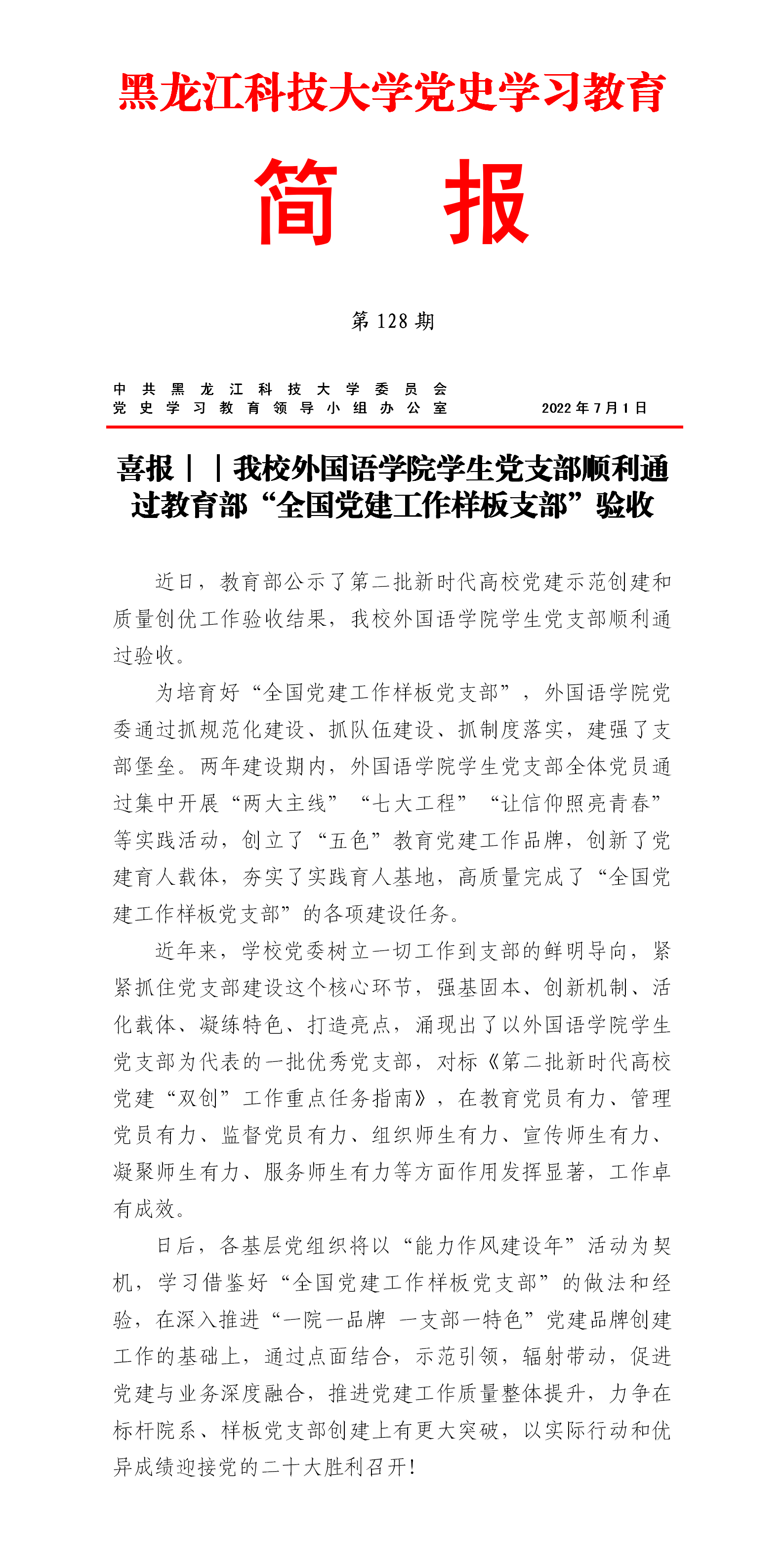 党史学习教育工作简报(第128期)