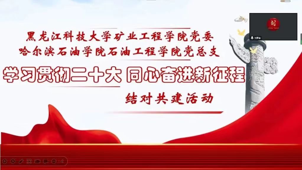 为深入学习宣传贯彻党的二十大精神,强化党建结对共建成果、深入拓展合作,12月9日,矿业工程学院党委与哈尔滨石油学院石油工程党总支就以学习“党的二十大精神”为指引,开展党建结对共建、产教研协同育人、学科共建及人才交流培养等方面进行深入的工作交流学院党委书记刘海涛、党委副书记李强、学生党支部负责人高媚娇,石油工程学院党总支书记刘雁春、党总支副书记张雪、副院长、教工党支部书记朱砂、学生党支部书记王娜出席会议。