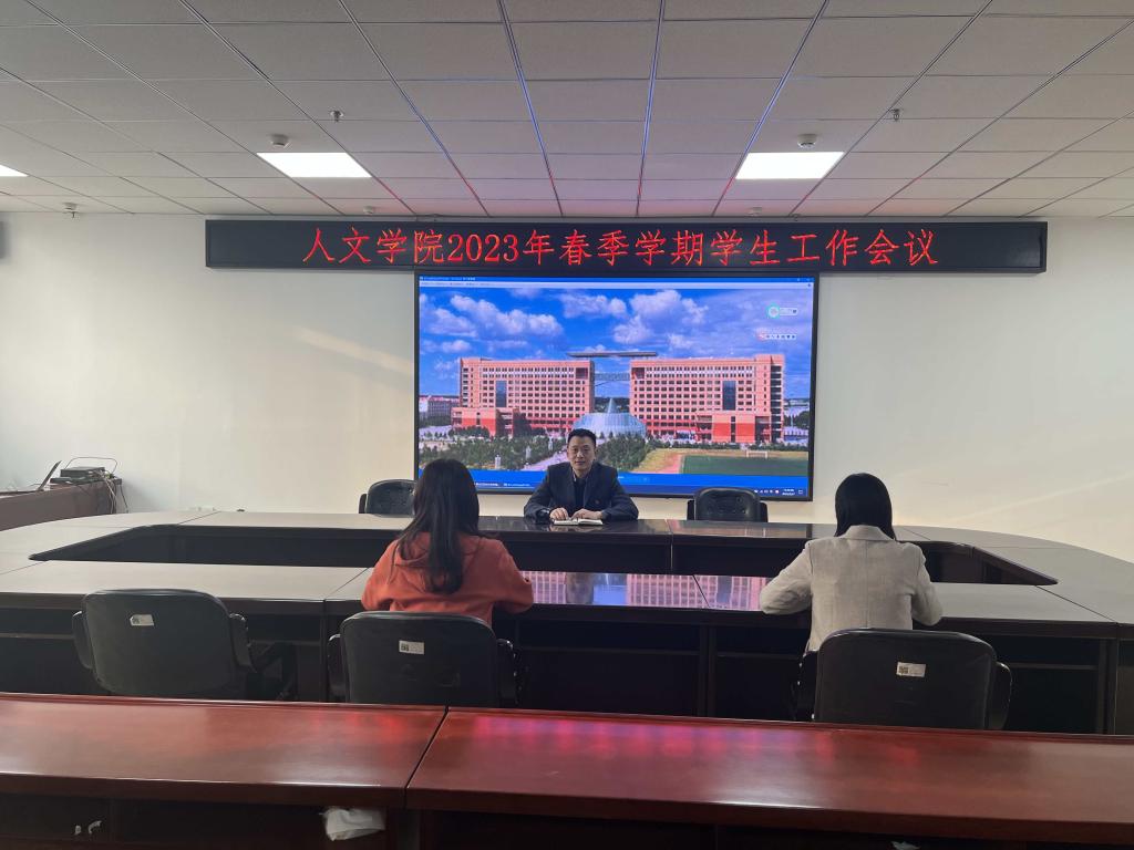 高度重视,科学部署,做好返校准备工作。根据疫情防控新阶段的新部署、新要求,召开人文学院2023年春季学期学生工作会议,学院党委副书记王伟强传达了学校2023年春季学期学生工作会议精神并对新学期学生工作提出了具体要求:一是要强化使命担当,高效完成新学期学生工作各项任务,提升学生教育管理服务水平;二是要做到高效统筹,严格落实学生返校前各项工作要求,建立《2023年春季学期学生返校健康信息》台账,做好学生返校前健康监测、返校统计等工作;三是学工队伍要立足工作实际,科学谋划,把安全稳定放在首要位置,以问题为导向,将各项工作落实、落细、落小。