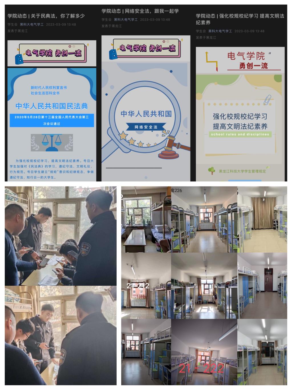 严明法规校纪“警戒线”。电气学院开展民法典普及宣传,增强法律学习;开展网络安全法宣传教育,强化法律意识;开展强化校规校纪学习主题班会,针对《米兰官网平台学生管理规定》进行学习,增强学生规矩意识和纪律观念;邀请松浦派出所民警共同开展反诈宣传,加强学生自我保护意识。