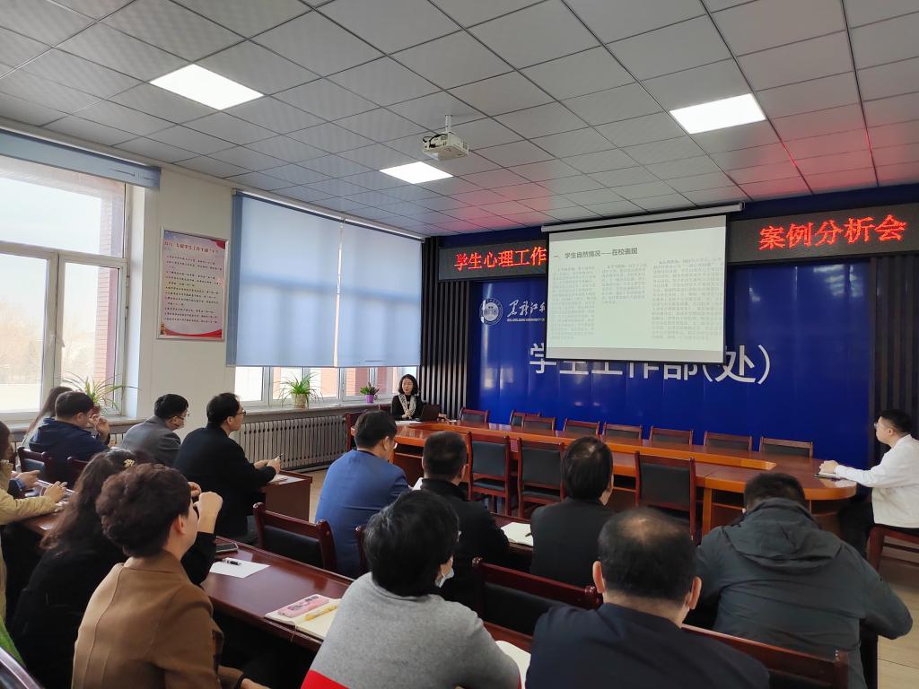 学工部(处)部(处)长邬承斌对本次心理案例分析会进行了点评和总结,肯定了学工队伍的努力付出,为学生健康发展及校园安全发挥着重要作用。希望各学院要以心理案例分析会为契机,不断强化学习,提高业务能力,继续加强对心理异常学生群体的心理排查力度,切实做好心理健康教育与心理危机干预工作。