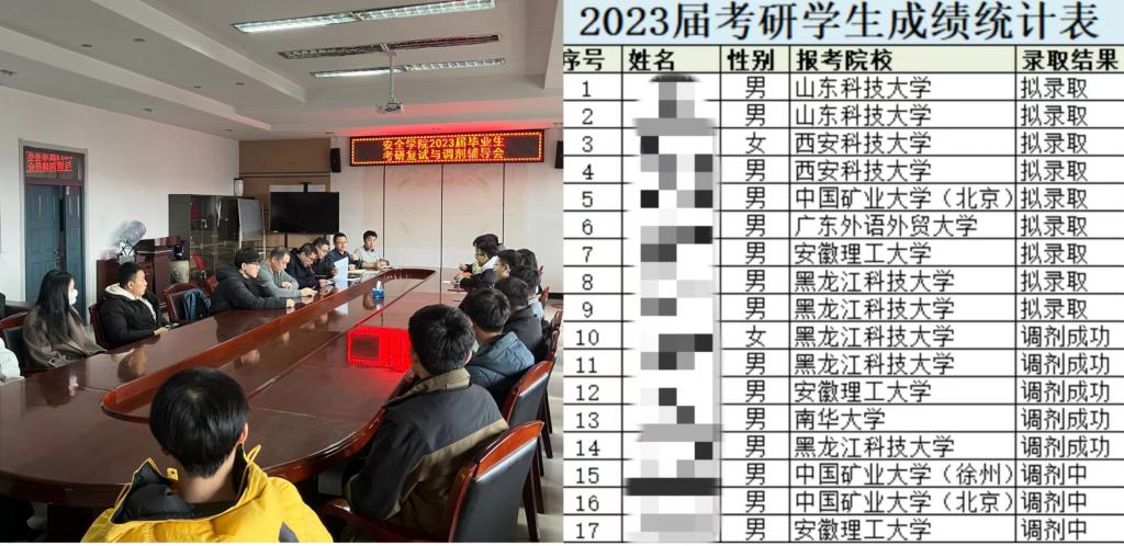关心关爱,指导帮扶抓推进。开学以来安全学院依靠“院、系、班”三级就业工作网络体系,开展系列讲座和会议进行就业指导和帮扶。3月16日,学院召开2023届毕业生考研复试与调剂辅导会,帮助考研过线的同学明确方向、把握重心、坚定信心,从容应对研究生复试与调剂,截至目前,已有9名学生顺利通过复试考入第一志愿报考院校,成功帮助5名学生调剂成功,现有3名学生正在复试调剂中。毕业班班主任组织召开未就业学生座谈会,在班级建立学生党员、学生骨干组成的就业先锋队,帮助未就业的学生推荐就业岗位促进就业。