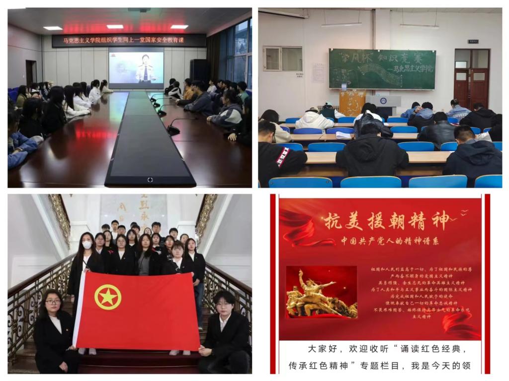 学思践悟强学风,博学力行求真知。以思想性活动为核心,注重青年学生思想引领。一是开展“缅怀先烈寄哀思,踔厉奋发向未来”系列活动,通过参观红色教育基地、志愿清扫烈士公园、观看红色爱国影片、书画作品征集等方式,坚定青年学生理想信念,厚植爱国主义情怀;二是组织学生同上一堂国家安全教育课、开展“增强保密意识 筑牢安全防线”第二十七届“学风杯”知识竞赛,切实提升我院青年学生自觉履行保密义务、维护国家安全和利益。三是牢牢占据网络思政育人阵地,在学院公众号平台“黑米兰官网平台马院思政之音”开设“诵读红色经典,传承红色精神”专题栏目,带领青年学生学习中国精神,体悟中国共产党人的精神谱系。