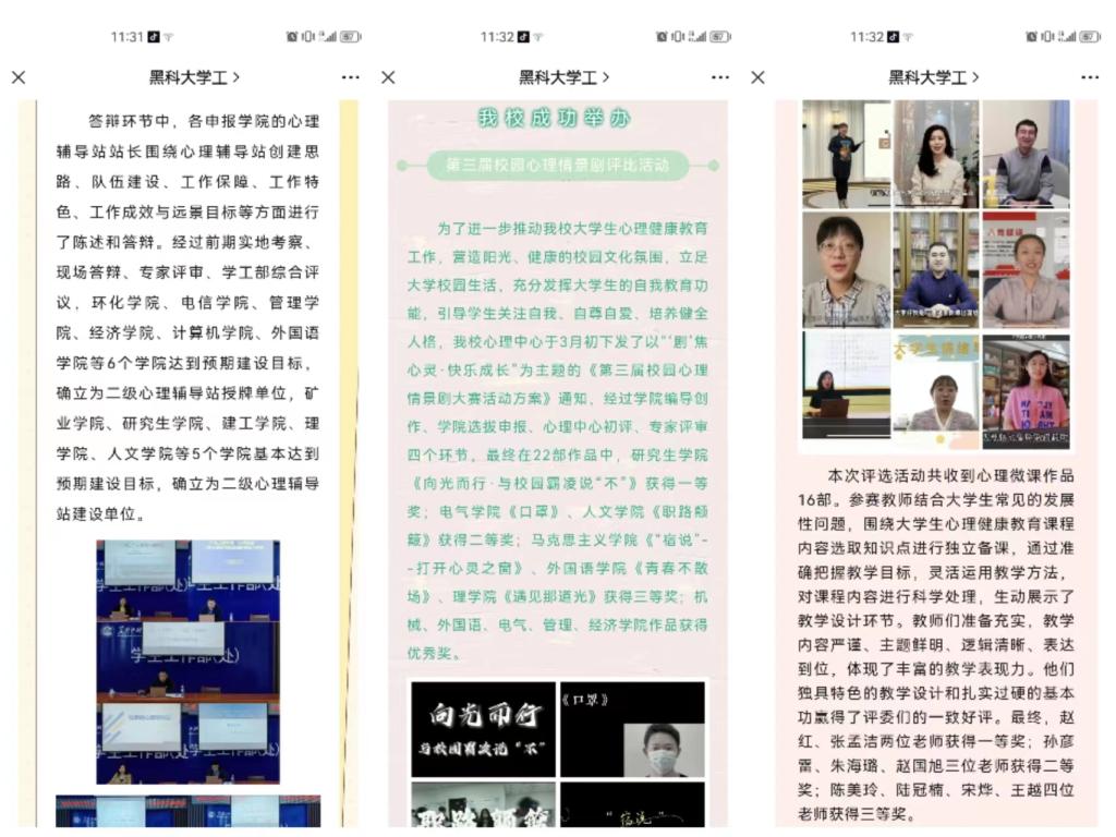 自学校心理健康月活动开展以来,学院建设成为二级心理辅导站授牌单位,选送的心理情景剧《涅槃》获得第三届校园心理情景剧优秀奖、陈美玲老师在《大学生心理健康教育微课程》评选中获得三等奖。5.25心理健康月活动的开展普及了心理健康知识,增强了学生心理保健意识,提高了自我认知能力,使学生学会积极的接纳自我,塑造了自尊、自爱、自律、自强的优良品格,促进了学院学生身心健康和全面发展。