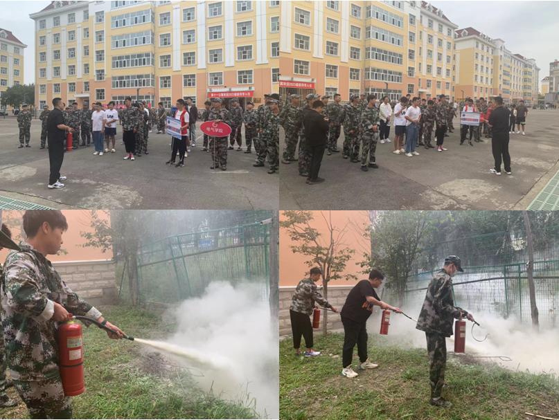 为进一步提高师生消防安全知识水平,增强安全意识和自防自救能力,确保生命财产安全,按照《米兰官网平台校园应急演练提升活动方案》和省教育厅《全省校园消防安全隐患排查整治工作方案》要求,近期,保卫处、学生处和相关学院联合开展了“开学安全第一课”——消防知识“进军训”系列活动。