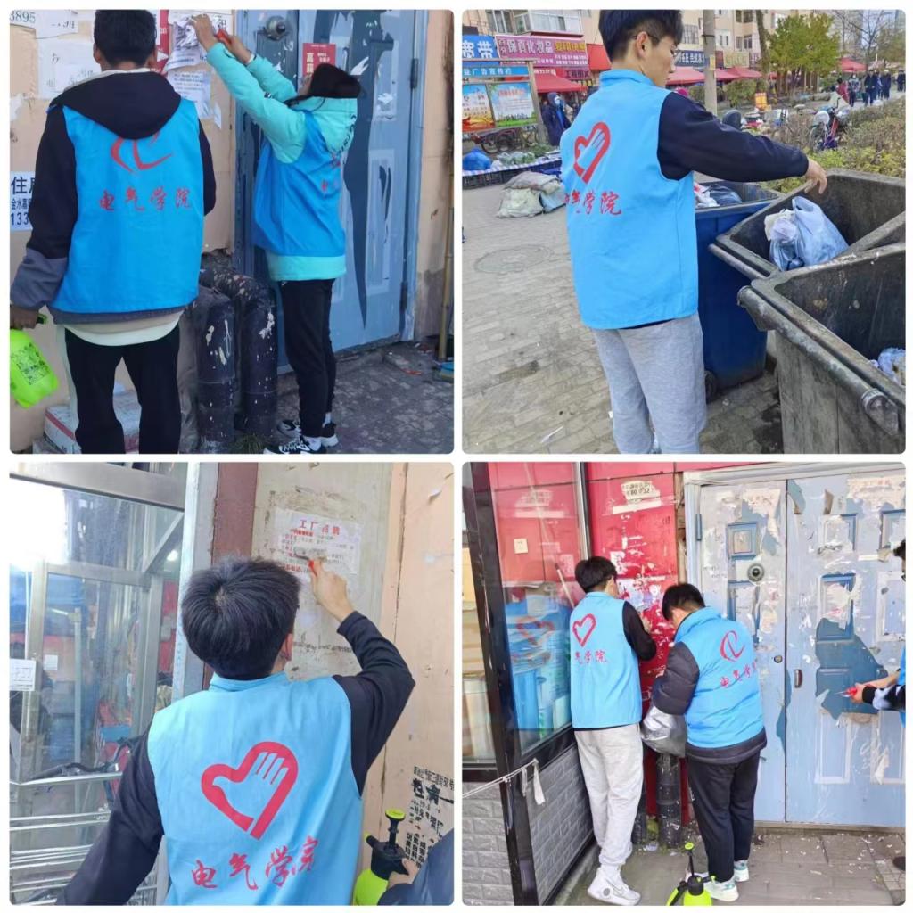 活动前夕,为推动青年学生与对接社区的双向赋能,学院团委负责人张孟洁与糖厂社区负责人安营进行了深入沟通,进一步细化落实要求,构建了供需双清单。本次活动采取专项治理和长效管理的方式,对糖厂社区临街居民楼的卫生问题进行清扫治理,志愿者们们携带清洁工具,身穿志愿服务马甲,分成小组,以楼宇为清理点,深入各单元楼进行清理广告、清扫公共区域、维护环境卫生活动。大家埋头苦干,团结协作,干劲十足,用清洁喷雾仔细清除墙壁上残留的喷绘、涂鸦、文字广告等,充分发扬不怕苦、不怕累的奋斗精神,用实际行动诠释志愿者的无私奉献精神,经过大家的共同努力,共计清扫了三栋居民楼,让社区的环境焕然一新。