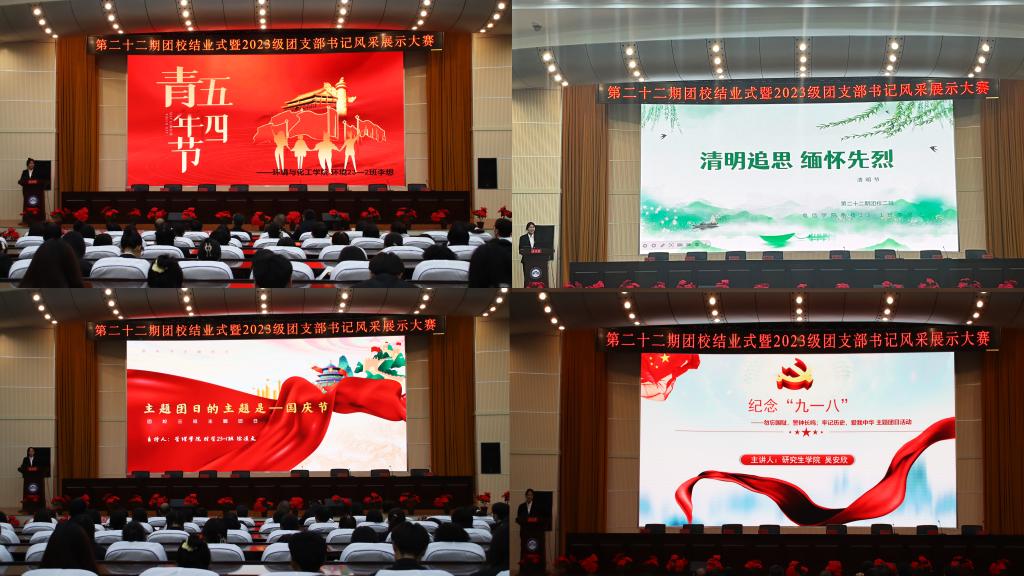本次团支部书记风采展示大赛以团校班级为单位进行比拼,共分为团支部风采展示、基础团务知识竞赛、微团课宣讲、主题团日设计等四个环节,集中考察了2023级团支部书记对习近平新时代中国特色社会主义思想的理解、掌握与宣讲能力,以及对团的基础知识和“三会两制一课”制度的运用。