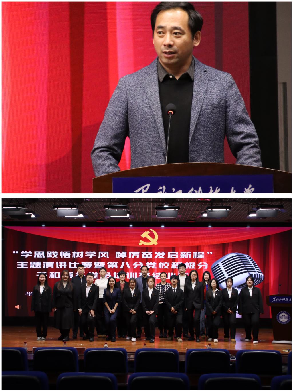为深入学习习近平新时代中国特色社会主义思想和党的二十大精神,进一步加强对入党积极分子和预备党员的教育和培养,提高其思想觉悟和政治素养,激发学生内在学习动力,全面提高人才培养质量,按照学校党委组织部的工作部署,党校第八分党校于11月22日在朝阳楼0131举办“学思践悟树学风踔厉奋发启新程”主题演讲比赛暨第八分党校积极分子和预备党员培训班结业式。经济学院党委副书记邬丽群、电信学院党委副书记吕平、经济学院组织员苏宇、辅导员陈美玲、王东旭和电信学院辅导员刘赢、王宗宇作为评委参加本次比赛。