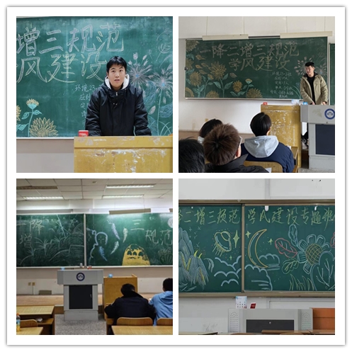 11月20日-24日,学院组织各班级开展“一降二增三规范”主题班会。各班级通过讲授、谈论和案例分析等多种形式组织班级同学学习了主题内容,包括讲一降:降低大学生网络依赖行为;讲二增:增加大学生体育锻炼时间、增强危机处理能力;讲三规范:规范大学生吸烟行为、规范大学生作息行为、规范大学生课堂学习和考试行为。
