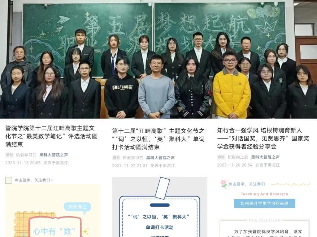 学思践悟强信念,网络思政开新篇。管理学院聚焦为党育人、为国育才主责主业,扎实开展了“学思践悟思想伟力 青春共建大美龙江”主题学习活动、“强理论·固根基”大学生学习竞答活动、“弘扬米兰官网平台精神 凝聚奋进力量”主题征文比赛、”青春飞扬,创新龙江”主题作品征集活动、“铭记历史,表彰先进”纪念“一二·九”运动88周年暨“先优”表彰大会等一系列政治性强、影响力高的活动,引领广大青年学生厚植爱国主义情怀,紧紧团结在党的周围,争做社会主义合格建设者和可靠接班人。