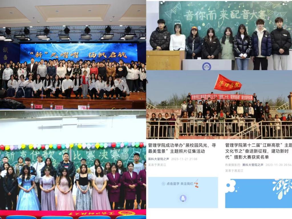 以文育人强内涵,放飞梦想展青春。管理学院在丰富学生课余生活的同时,为广大青年学生实现梦想、展现自我提供了可靠平台,开展了“逐梦二十大,筑梦青春路”新生拔河比赛、第七届“新声代”歌唱大赛、“奋进新征程,建功新时代”摄影大赛、“展校园风光,寻最美雪景”主题照片征集活动、“音”你而来配音大赛、“‘新’光熠熠,扬帆启航”欢迎2023级新生文艺晚会等文体活动,为创建管院特色文化品牌打下了厚实基础,引领校园文化建设活动迈向新征程。