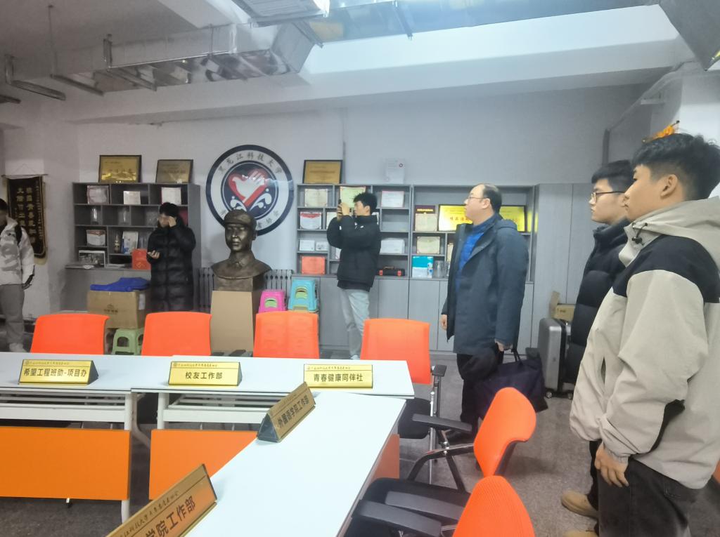 为深入贯彻落实学校党政对安全工作的要求,扎实推进开学启动工作,切实做好校级学生组织活动室安全管理工作,2月26日新学期第一天,校团委副书记陈曦率队对校级学生组织活动室进行了安全检查。