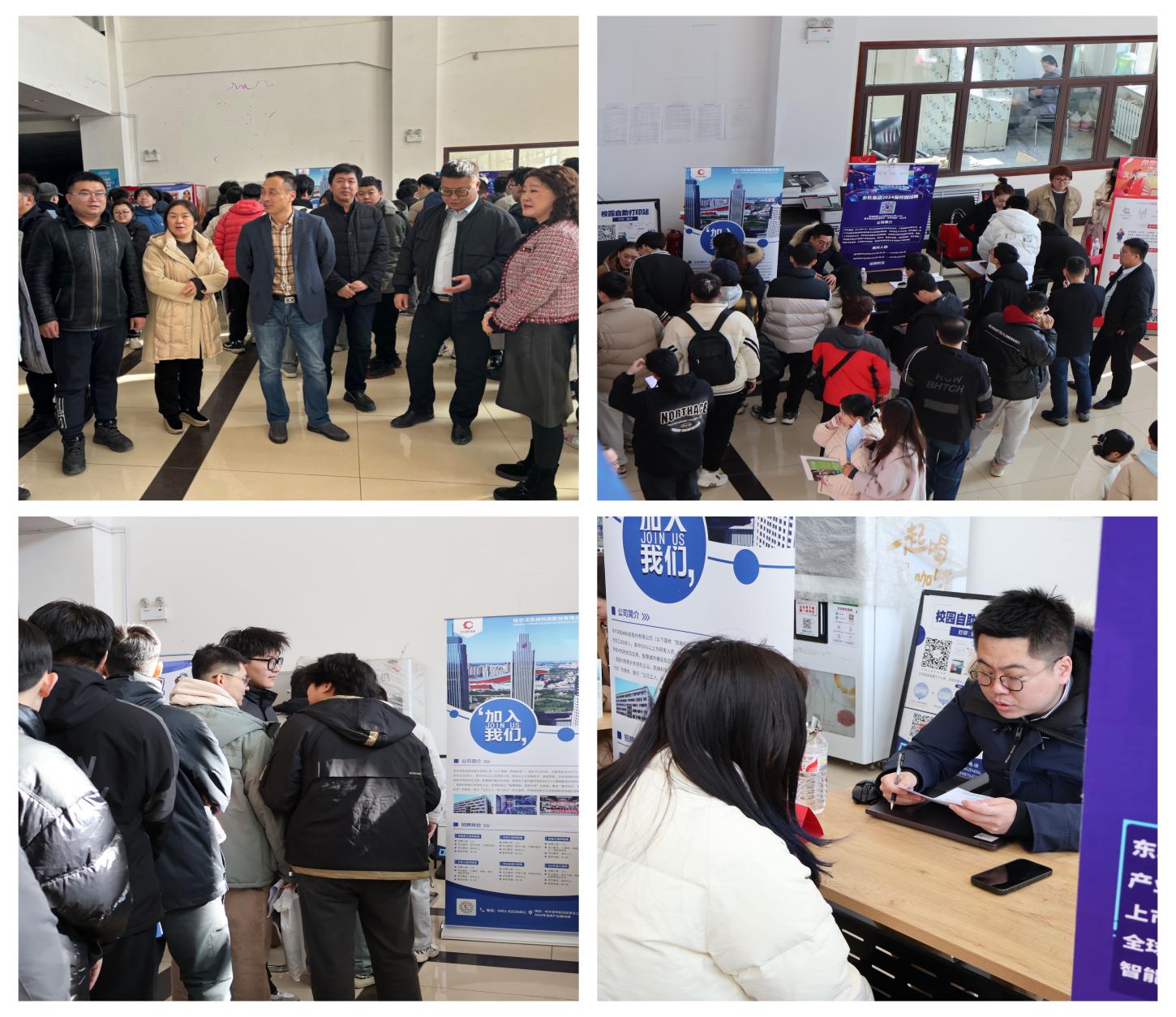 理学院领导班子成员带头示范、全体教师群策群力,深入挖掘企业资源,本次招聘会邀请包括黑龙江海康网络科技有限公司在内的多家企业,囊括学院所有专业,吸引了众多2024届毕业生到场。在招聘会现场,同学们带着个人简历积极参与,与各用人单位主动交流,现场直接面试,初步达成签约意向30人。