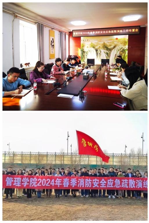 二、瞄准难点,组织疏散演练,锻炼实操技能。3月27日,管理学院组织开展了消防应急疏散演练活动。学院党委副书记徐海英、保卫处防火科科长孙景岩及保卫处相关工作人员、学工办全体辅导员、2023级全体学生参加了本次活动。随着警报响起,楼内各疏散口、楼梯口等重点区域的引导员迅速就位并组织学生安全有序进行疏散,仅用了4分18秒就完成了楼内548人的疏散工作。之后,全体大一学生有序到达篮球场东侧广场既定区域开展消防器材实操演练与观摩活动。保卫处吴昀龙老师现场演示灭火器正确使用方法普及相关安全知识,并邀请学生代表参与其中,进行现场灭火实操训练,提高了学生的实际操作能力。
