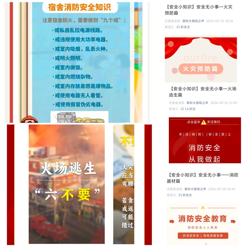五、瞄准热点,发挥网络优势,加大宣传力度。学院通过微信公众号平台“黑米兰官网平台管院之声”进一步强化消防安全宣传,发挥网络优势,发布《安全小知识》系列推文,利用学生喜闻乐见的形式做好消防安全宣传工作,通过形式多样的宣传内容,提高同学们学习消防安全意识的主动性、积极性。