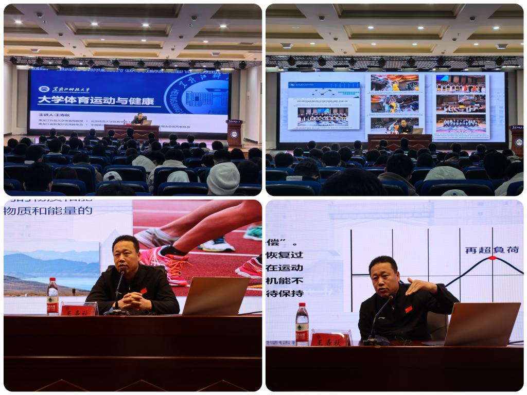 活动中,王寿秋教授以“与运动同行,与健康相伴”为主题,深入浅出地从三个方面向同学们讲述了运动健康管理知识。一是围绕科学运动的原则方法和注意事项,分享了渐进性原则、经常性原则、全面性原则、自觉性原则、安全性原则四种原则和间歇锻炼法、循环锻炼法、重复锻炼法、变换锻炼法四种锻炼方法,详细的介绍了科学体育锻炼的运动方式;二是围绕运动损伤的简单处理,列举了运动损伤的几种常见的症状:有运动中呼吸急促、胸部闷胀,运动结束后小腿肌肉痉挛、肌肉酸痛,结合大众运动的注意事项,分享了关于运动损伤的简单处理方法;三是围绕健身运动损伤与预防措施,为同学们详细介绍了伤后头部、颈部等重点部位的急救措施以及运动时的预防措施,分门别类地从指关节扭伤、踝关节扭伤、韧带拉伤等问题出发,举例向同学们讲解各类问题的紧急处理方式。