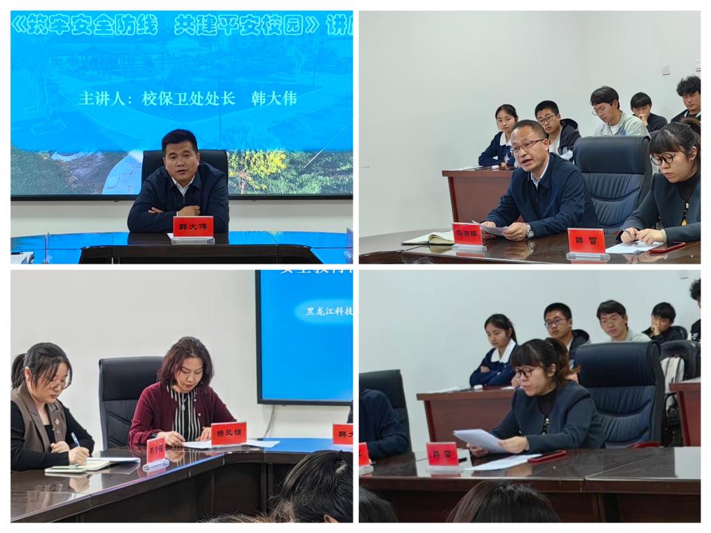 校保卫处处长韩大伟以《筑牢安全防线共建平安校园》为题,聚焦政治安全、治安安全、交通安全、防溺水安全、消防安全等五个方面进行了生动的讲座,以真实的校园案例深入浅出地阐述了各种安全隐患的形成原因和防范措施。韩处长强调,校园安全防患于未然是关键,“没有安全这个‘1’,其他一切都是‘0’”!希望同学们严格遵守国家法律法规、校规校纪,坚决做到“七不准”,时刻保持头脑清醒,增强自我保护意识,共同维护校园的安全稳定。
