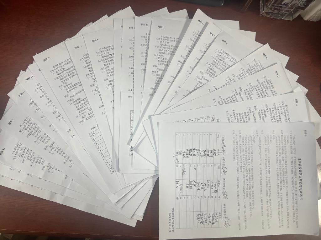签订一份“承诺书”,营造一个“平安”的家。辅导员、班主任通过主题班会等形式,向学生宣讲防火放电防盗知识,切实提高学生各方面自我预防、自我保护的能力。同时组织学生签订了《理学院校园防火防电防盗承诺书》,从思想上牢固树立安全意识的责任,保障全体学生安全,共同营造一个安全、舒适的学习和生活环境。
