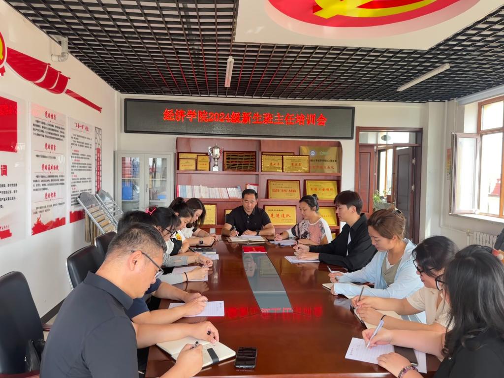 为落实立德树人根本任务,进一步加强学院班主任队伍建设,切实提升新生班主任专业素养和工作能力,确保2024级新生入学工作的顺利进行,8月29日上午,经济学院于朝阳楼0502室召开2024级新生班主任培训会。党委副书记邬丽群、全体辅导员及新生班主任参会,会议由学工办主任陈美玲主持。