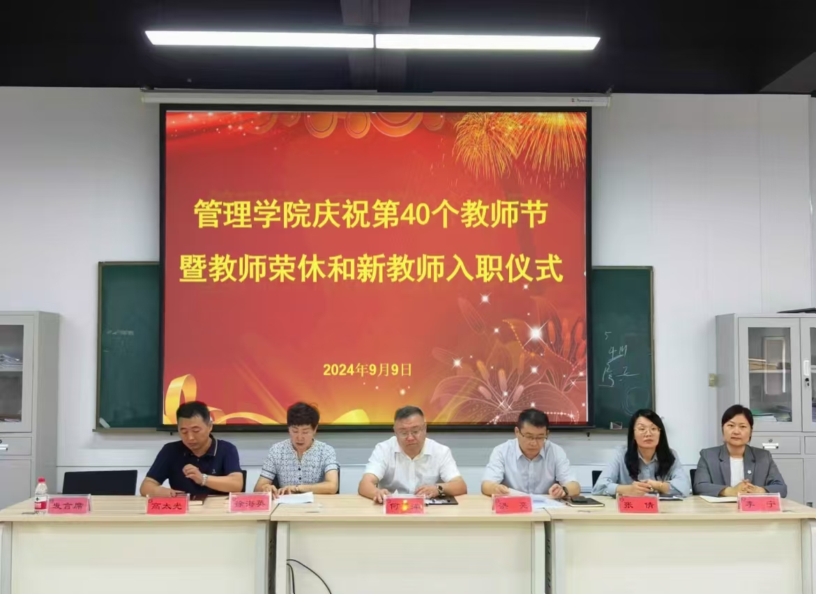 为深入学习贯彻落实党的二十届三中全会精神,进一步弘扬教育家精神,营造尊师重教的浓厚氛围,激励广大教师积极投身教育强国建设实践。9月9日,管理学院举办庆祝第40个教师节暨教师荣休和新教师入职仪式。学院领导班子成员和全体教职工共同见证了这一温馨时刻。仪式由学院党委副书记徐海英主持。