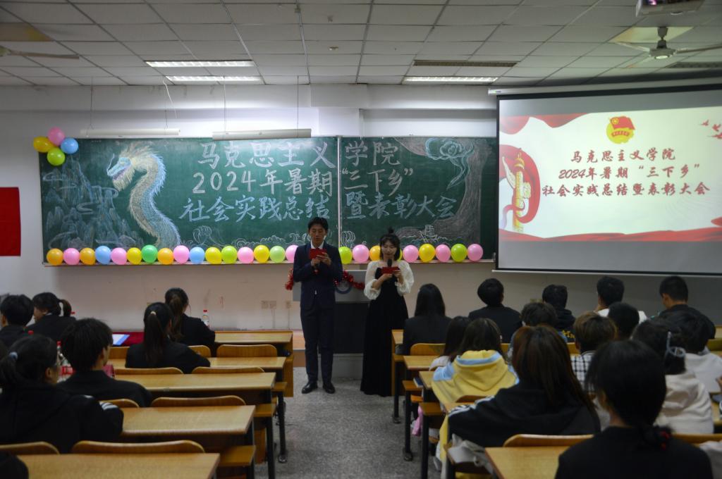 为深入学习贯彻习近平新时代中国特色社会主义思想和党的二十大精神,进一步巩固实践成果,深化活动影响,扩大育人实效。9月27日,马克思主义学院召开2024年暑期“三下乡”社会实践总结暨表彰大会,学院团委书记宋烨、团学骨干、学院学生代表参加会议,各学院团委副书记出席会议。