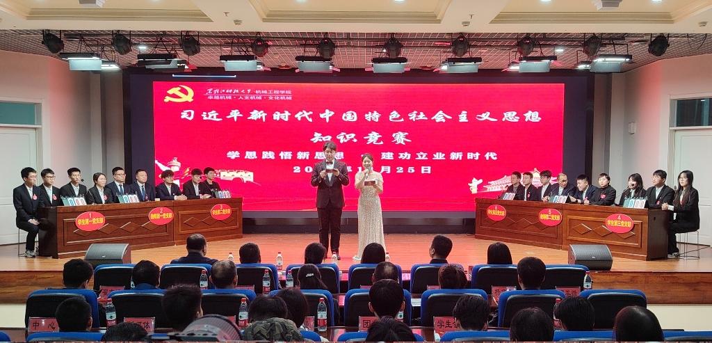 为把学习贯彻习近平新时代中国特色社会主义思想不断引向深入,切实提升以学铸魂、以学增智、以学正风、以学促干的学习成效,近日,机械工程学院举办了以“学思践悟新思想·建功立业新时代”为主题的习近平新时代中国特色社会主义思想知识竞赛,并于11月25日晚,在朝阳楼0131会议室举行了决赛。学校党委组织部副部长林松、党委宣传统战部副部长刘慧莹、学院领导班子成员出席决赛现场。全院师生党员和部分入党积极分子共200余人现场观看了决赛。